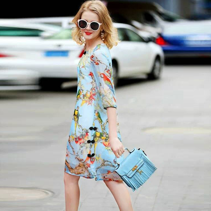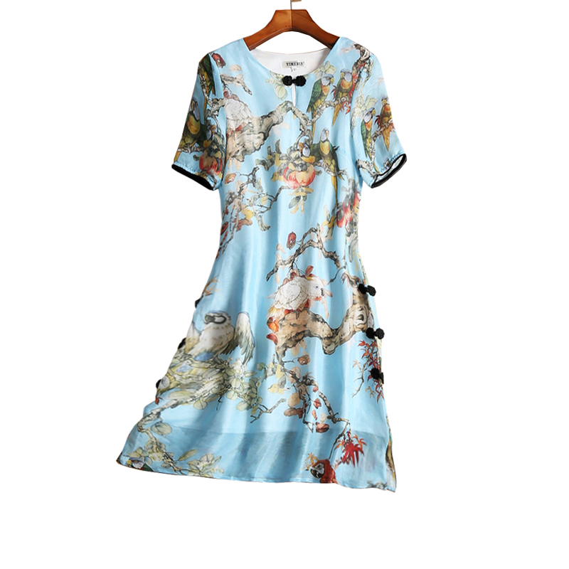 Qipao Summer 2019 new female literature and art improved version retro big size A word silk Asayo dress female end Zhuang atmosphere