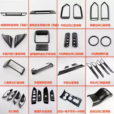 Seat heating frame (high configuration) passenger seat belt reminder frame (low configuration) central control air outlet decorative frame on both sides of the air outlet decorative frame window triangle decorative frame passenger storage box decorative frame a pillar air outlets on both sides of the air outlet