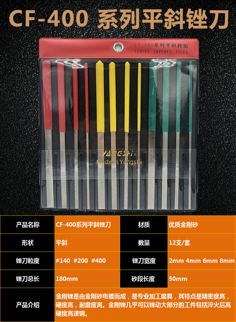 Diamond Flat Slanted Filing Knife CF-400 Diamond Sand Filing Knife Hard Alloy Steel Filing Knife Large Flat Inclined Filing Knife Suit