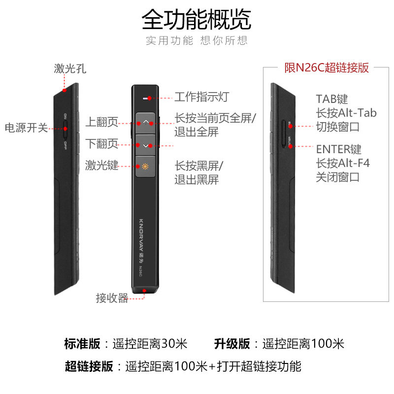 Nois for N26C ppt page-turning pen laser projection pen demonstrator pen remote pen electronic pen teaching whip page-turner