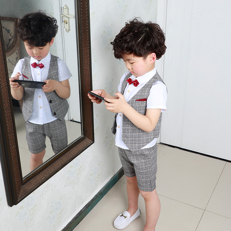 2021 Summer Boy Minor Suit Waistcoat Suit Small Chair Gown Three Sets 61 Children's Table Performance Clothing