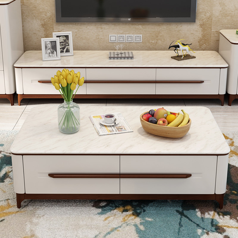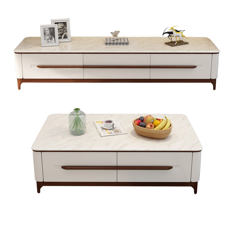 Minimalist Home Modern Marble Tea Table TV Cabinet Nordic Solid Wood Living Room Furniture Glass Wine Cabinet Composition Suit