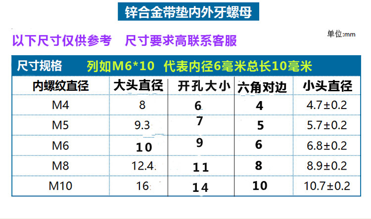 Internal and external teeth nut zinc alloy countersunk head inner hexagon belt M45M6M8M10 wooden board furniture embedded screw cap