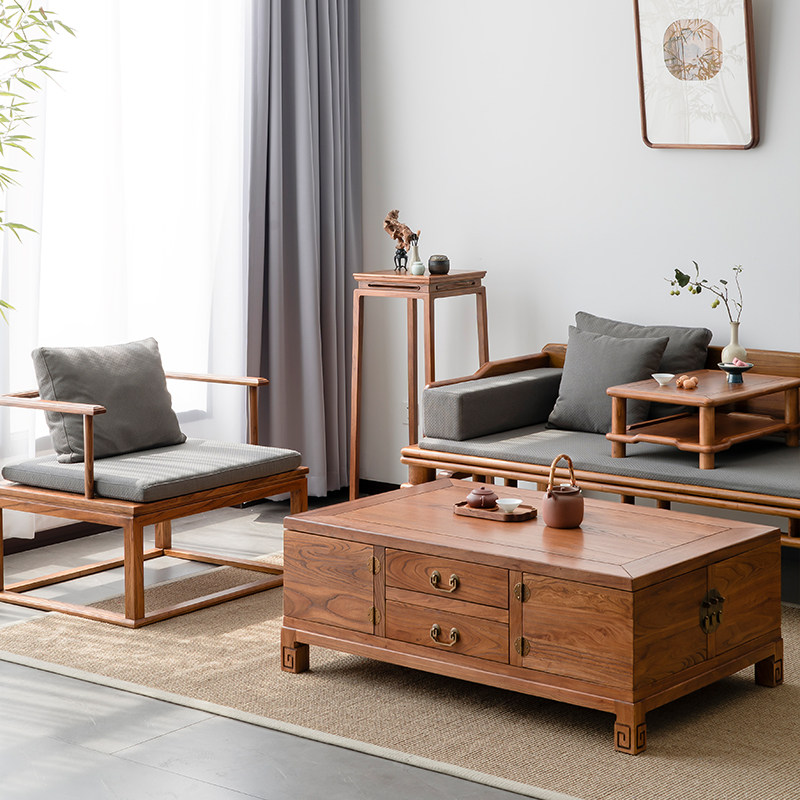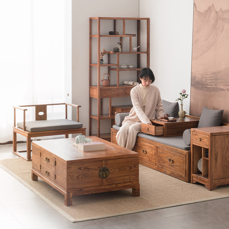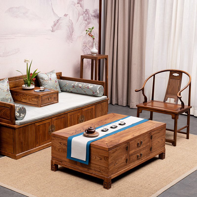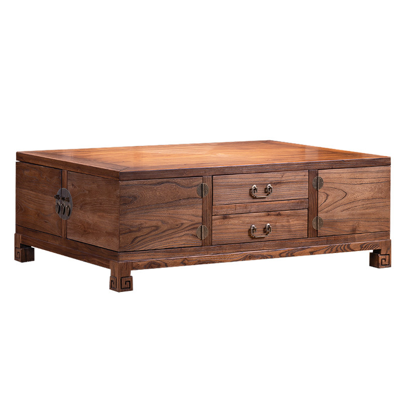 New Chinese-style coffee table box solid wood retro Zen simple log old elm living room multifunctional antique box furniture