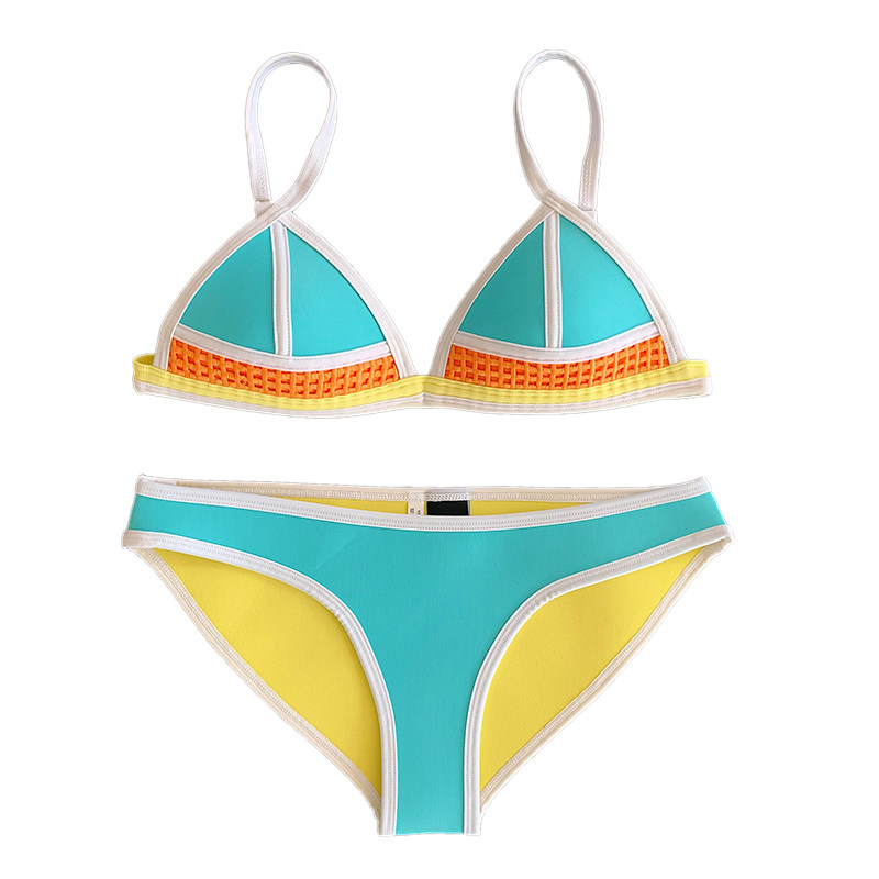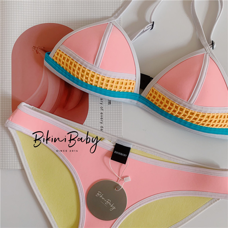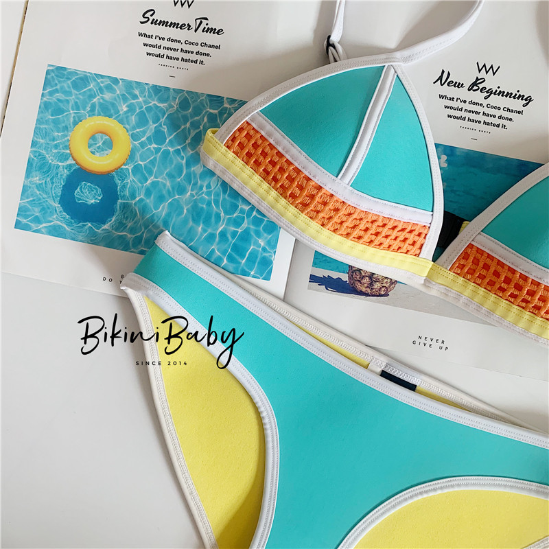 ins Two-piece sexy three-point free steel ring triangular bikini small breasts gather the seaside neoprene swimsuit woman