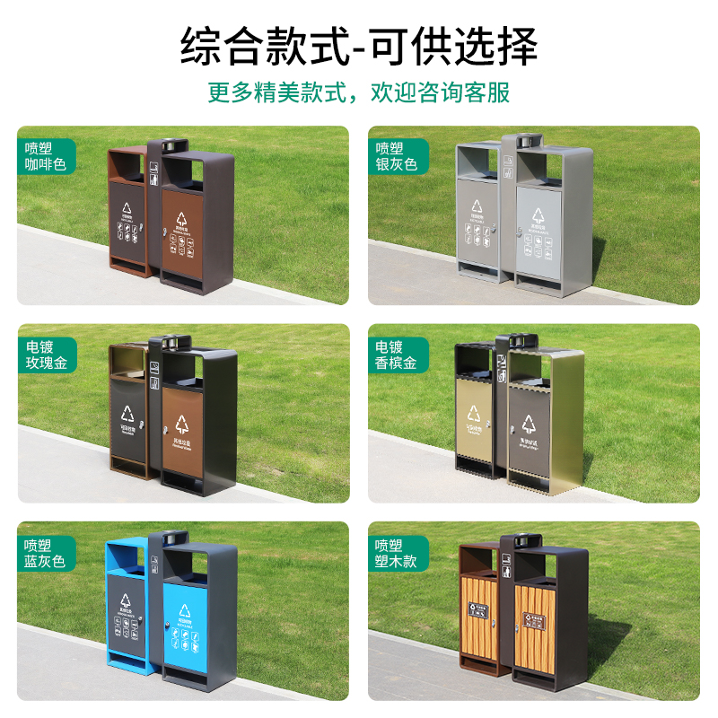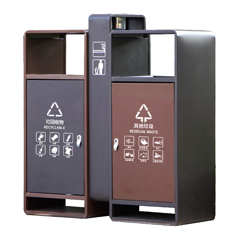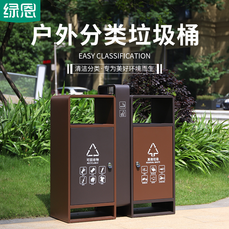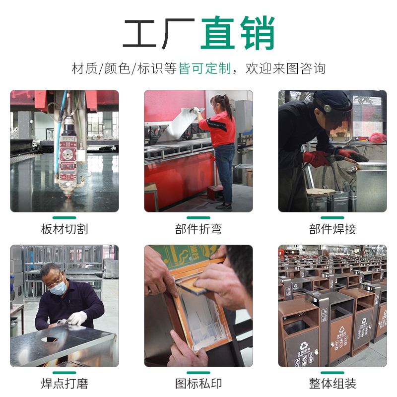 Customized 201 stainless steel trash cans classified street block outdoor suitcase sanitation large trash bin green