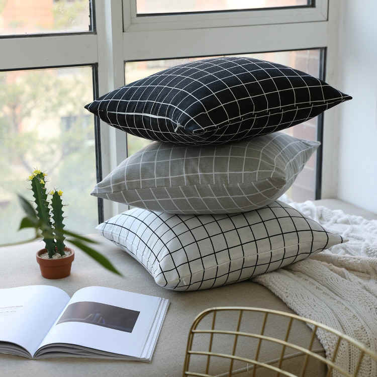 Modern minimalist grid holding pillow waist cushion cotton linen cushions cover simple European sofa backrest headboard resting on pillow linen