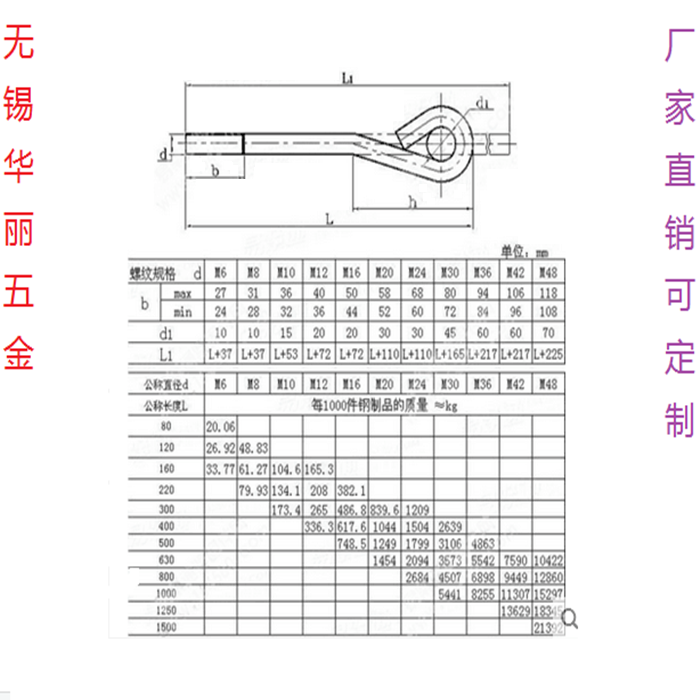 GB799 Anchor bolts 7-shaped L-shaped embedded bolts 9-shaped anchor screws M12M16M20 M24M30