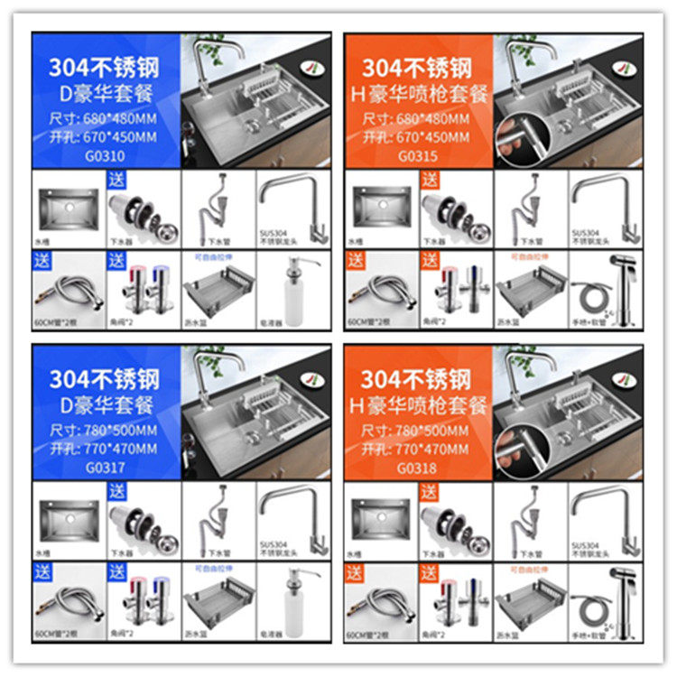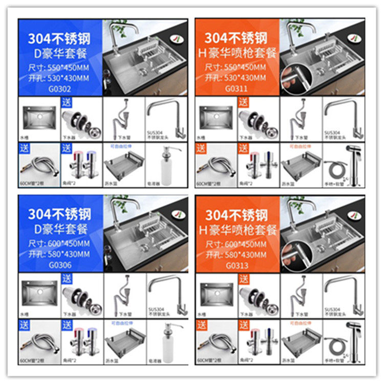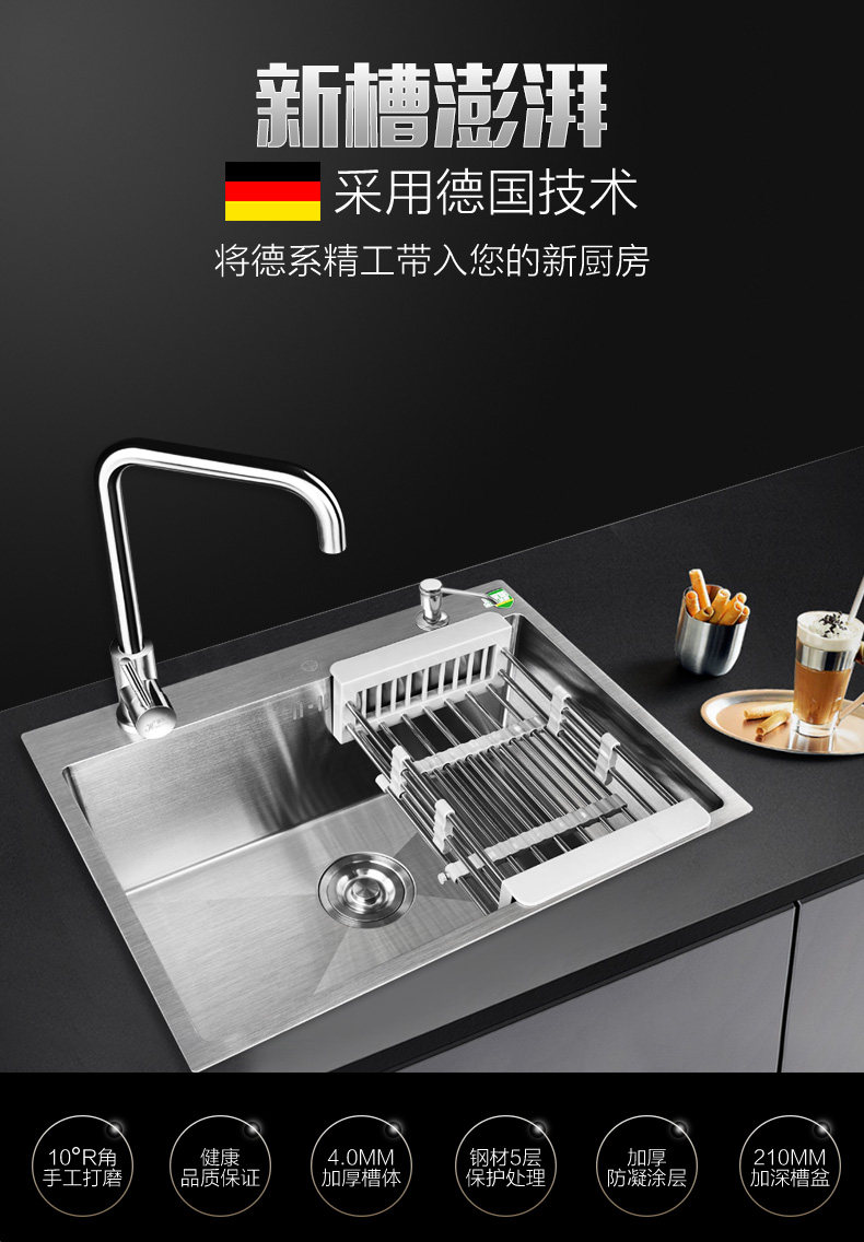 Germany thickened manual sink Single sink 304 stainless steel sink Kitchen Wash basin Dishwashing Basin table Lower basin