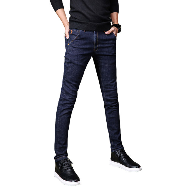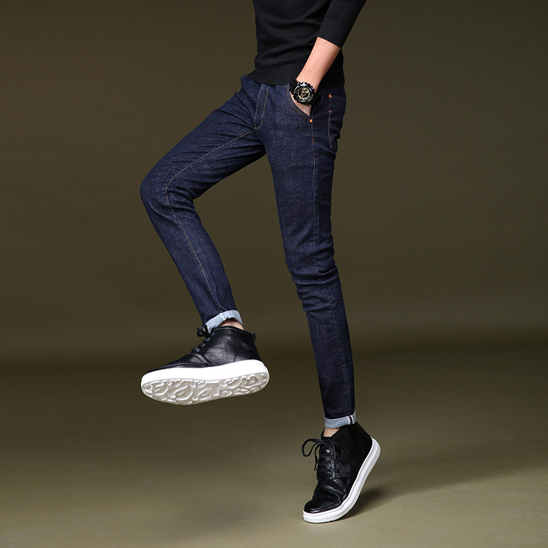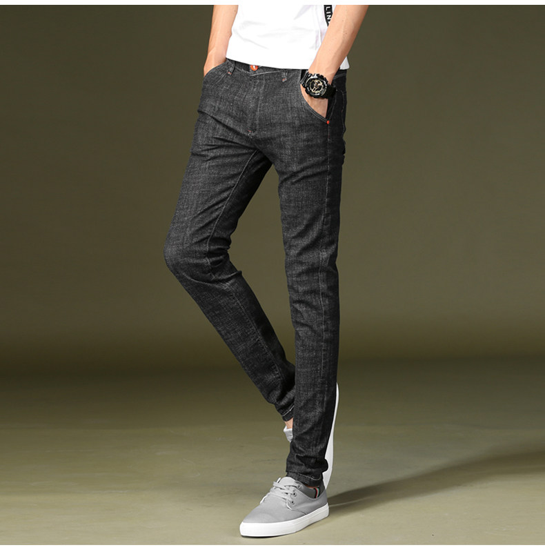 Chao brand jeans men's high elastic spring and summer British youth slim pipe pants men's junior Korean pants men's