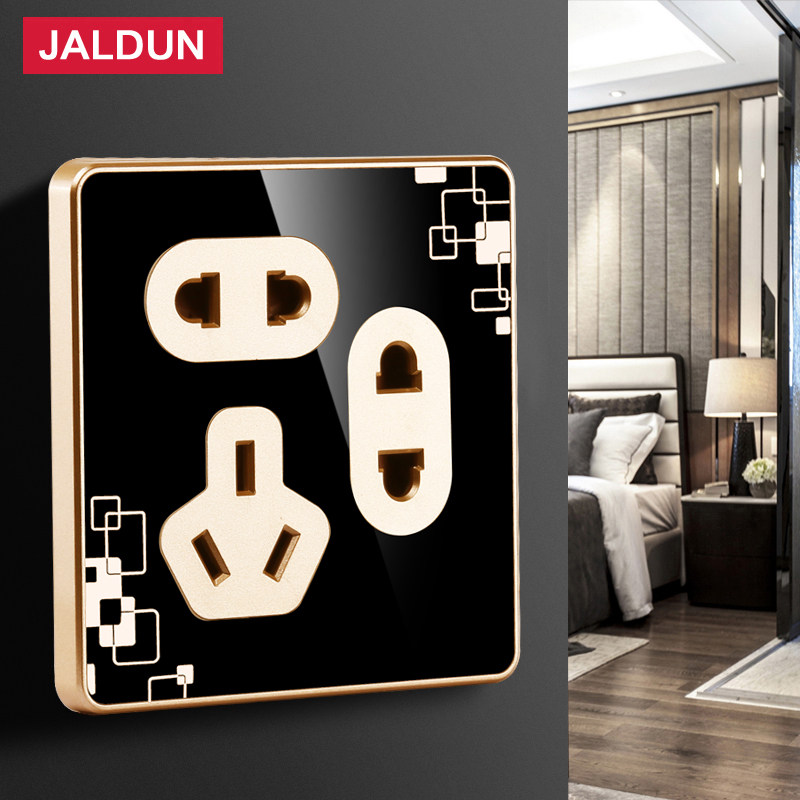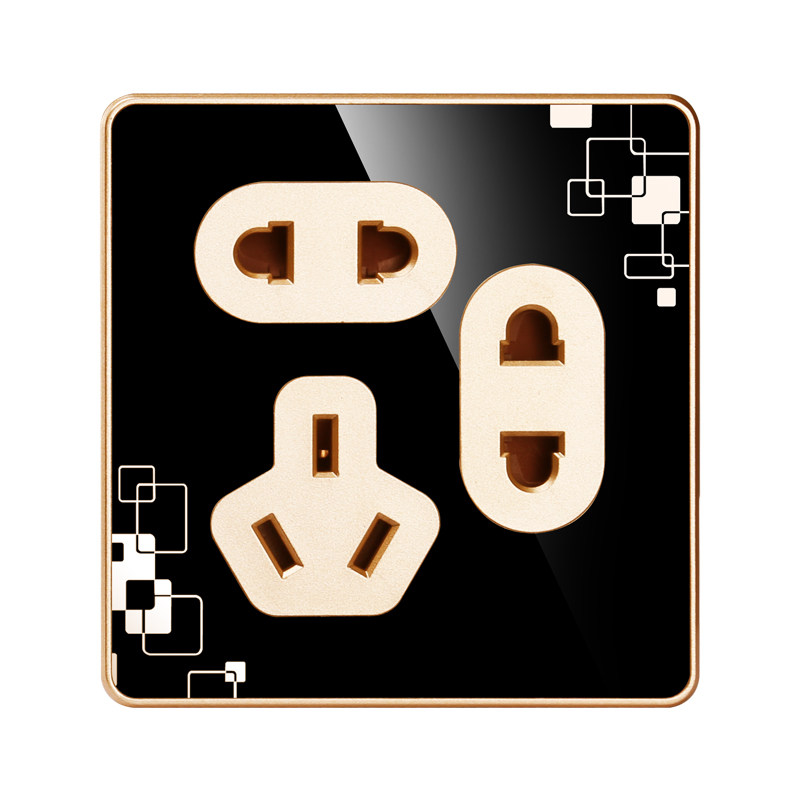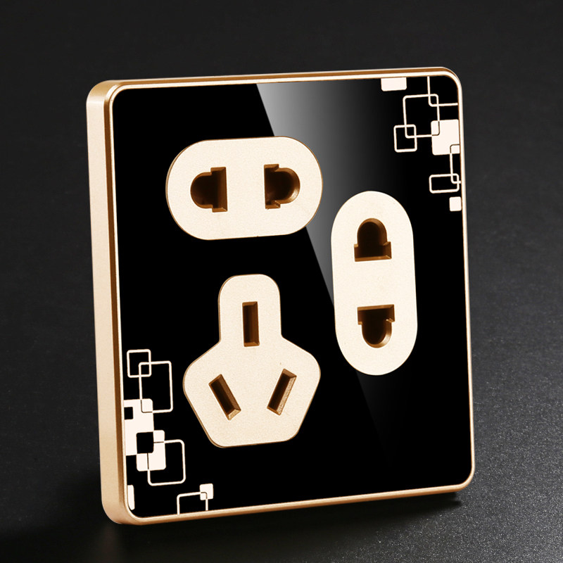 Seven-hole socket household 86 type with steel frame two two three plug wall switch panel black with pattern power socket