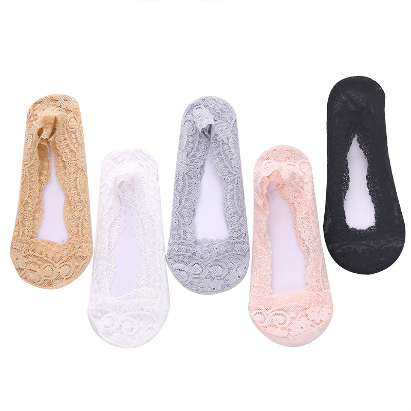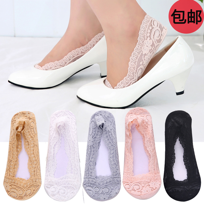 Lace Socks Invisible Socks Female Tide Pure Cotton Spring Autumn Thin light mouth South Korea Cute Day Series Invisible Silicone Gel Non-slip Socks