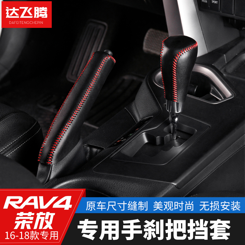 Dedicated to 14-19 Toyotarav4 Rongfang leather gear cover leather handbrake cover shift handle gloves interior modification