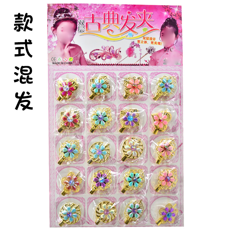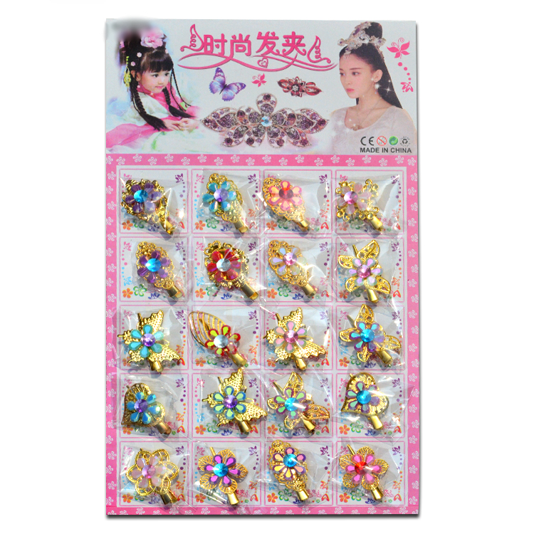 Girl love 20 into metal butterfly inlaid diamond flower retro hair accessories hairpin clip children's hanging board toy