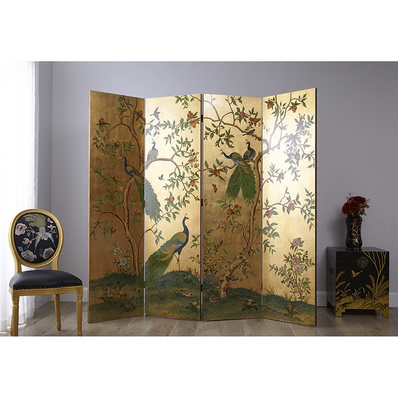 Living room new Chinese hand-painted peacock gold leaf old lacquer painting screen hotel villa entrance folding partition customization