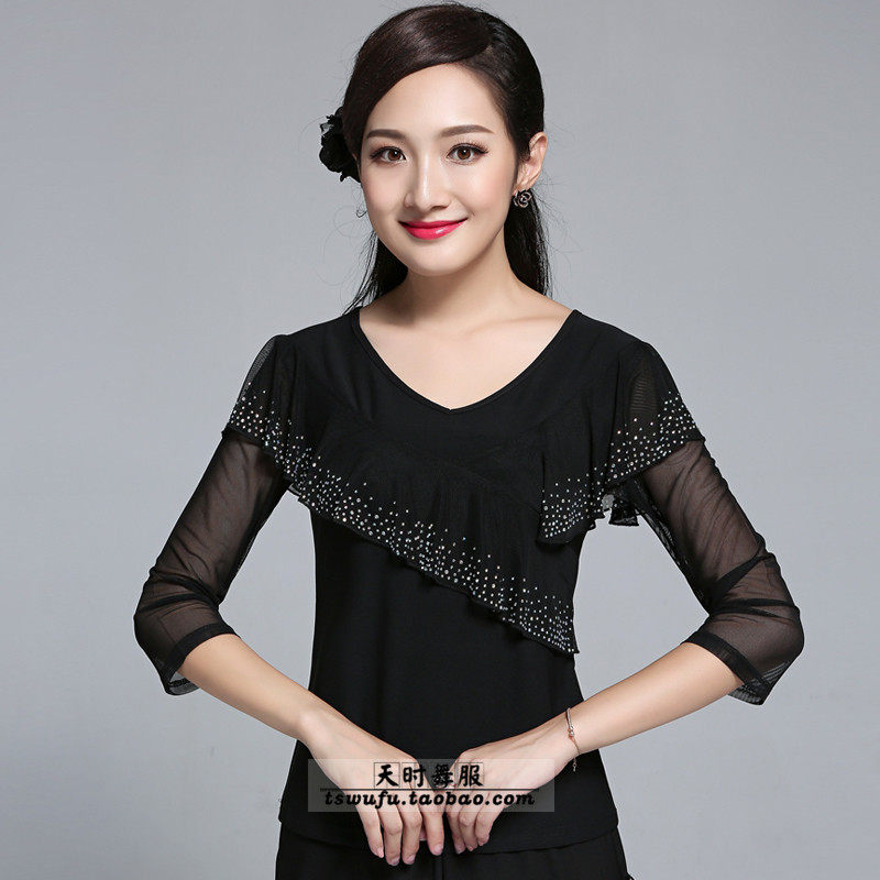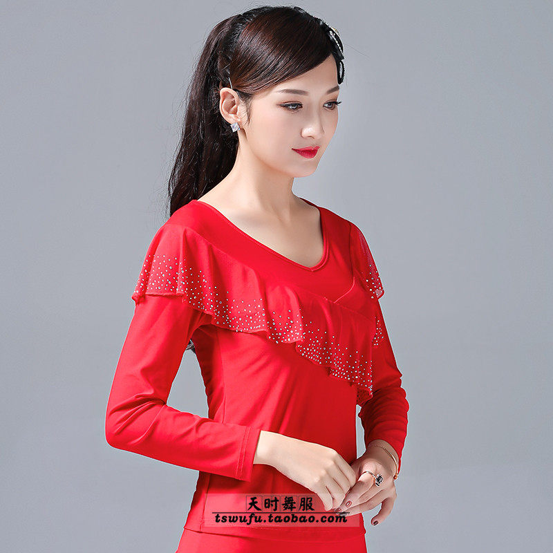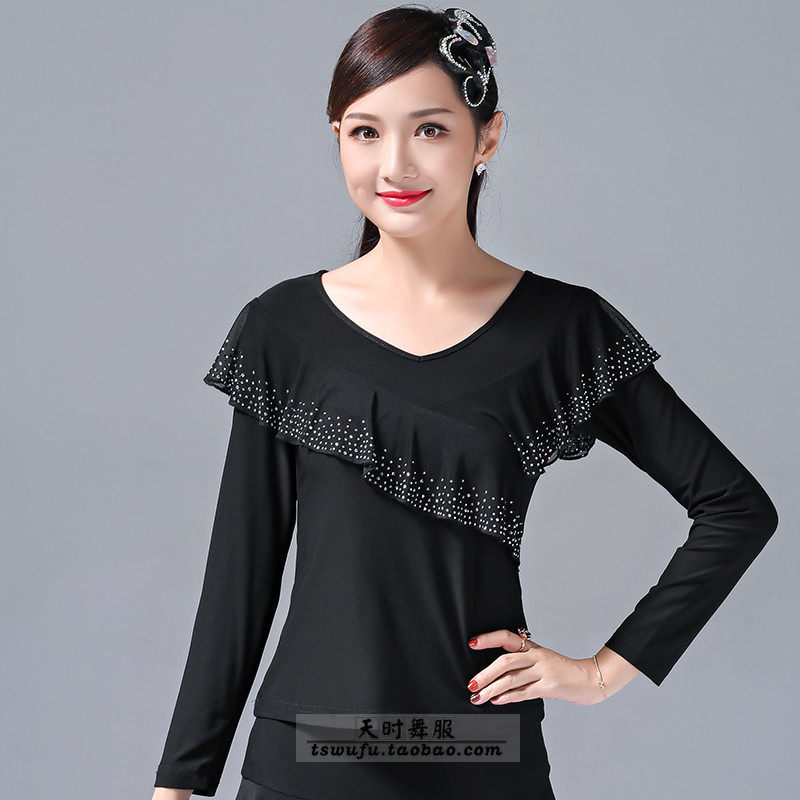 Sailor dance Jitba three-step Latin dance top Female V-neck modern dance National standard dance Square dance practice suit autumn