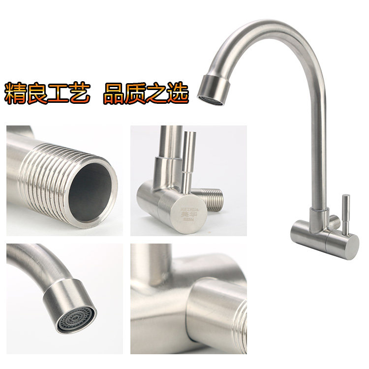 SUS stainless steel into the wall horizontal single cold water faucet wall out single cold vegetable basin big bend into the corner type single cold