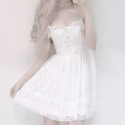 Japanese soft girl girl chest cross bow strap Sexy Slim white lace skirt suspender skirt