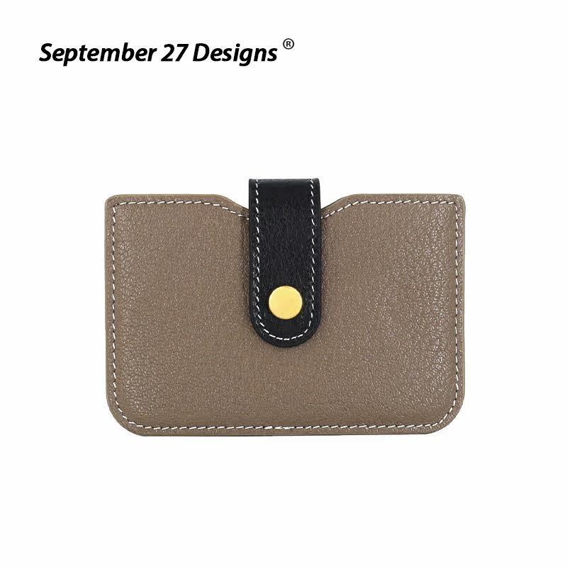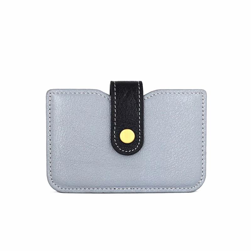 Genuine Leather Mountain Goat Leather Buckle Cute Little Card Bag Organ Card Clip Woman Retro Zero Wallet Collision Color Buttoned Portable sleeve