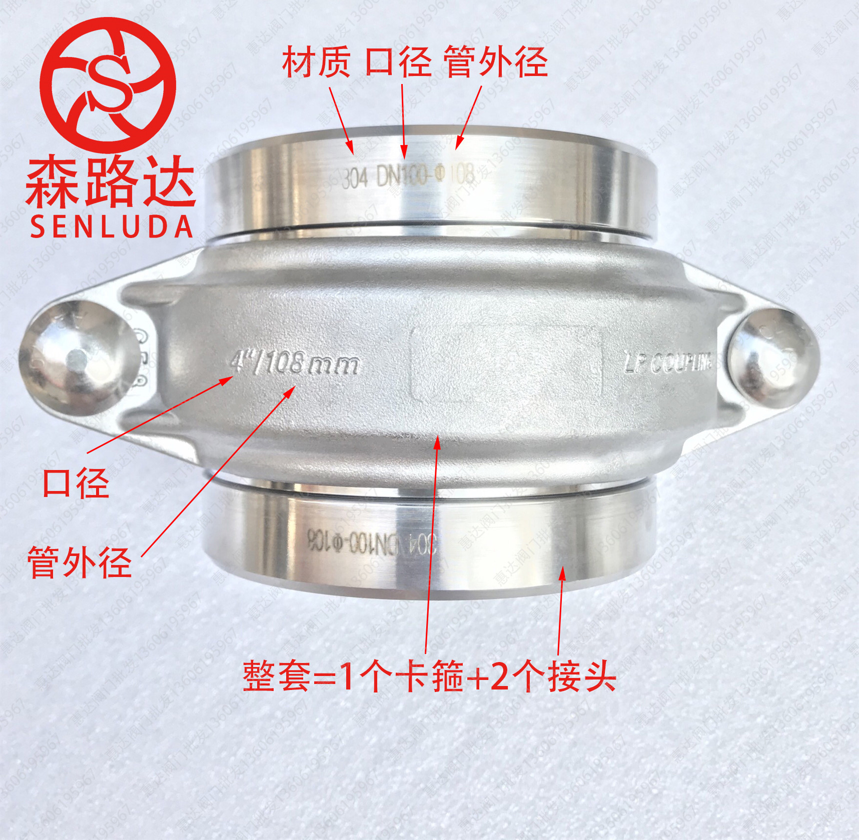 304 copy linca hoop DN20-DN300 stainless steel hoop groove tube clamp kaubelin low pressure 16kg
