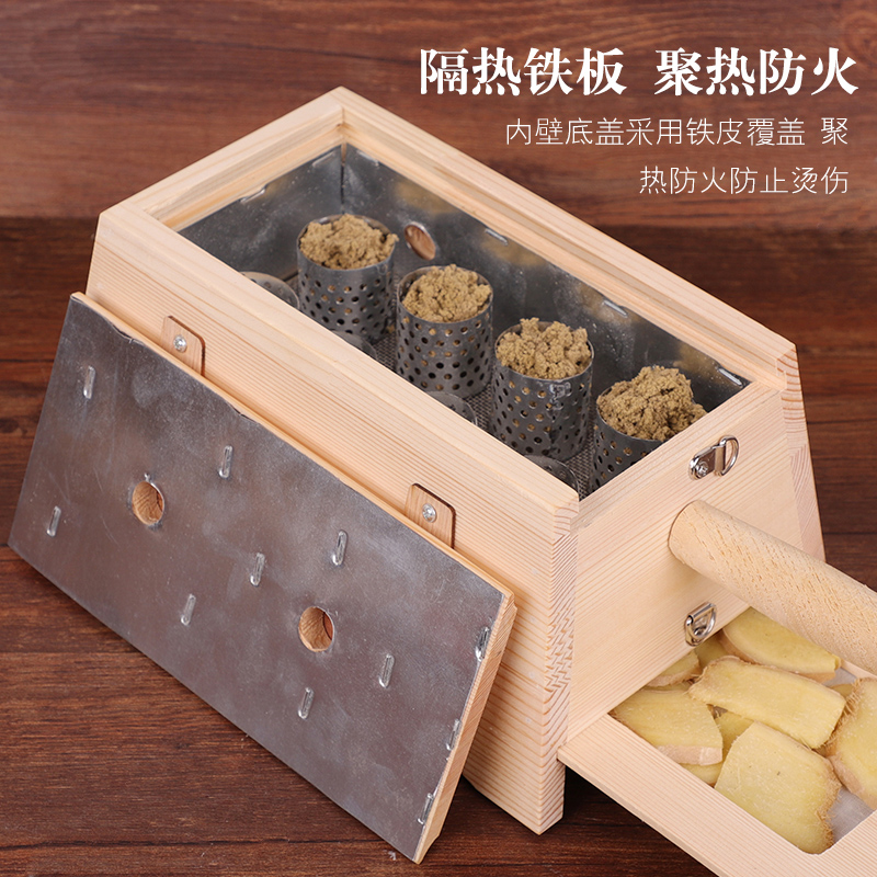 Wooden moxibustion box separated ginger portable moxibustion new moxibustion box solid wood household waist, abdomen, back and stomach for general use - Taobao