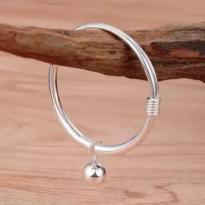 Jiule 999 sterling silver bracelet children solid simple glossy push-pull adjustment with Bell adult Young gift