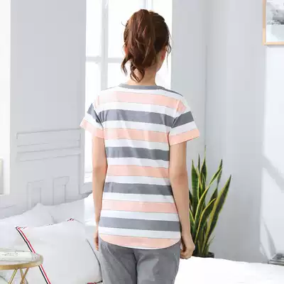 Pajamas women's summer short-sleeved three-point pants pure cotton two-piece suit summer Korean loose cotton girl casual home wear