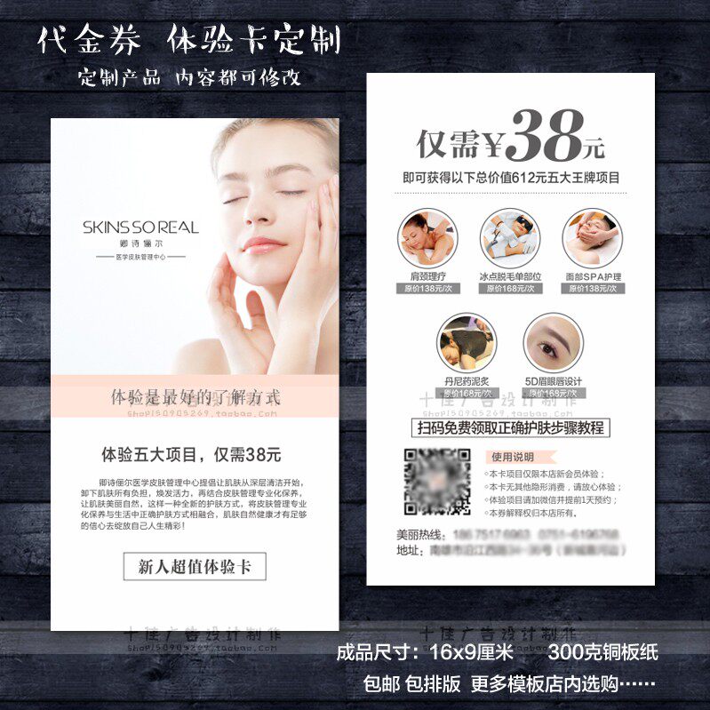 Beauty Health New Guests Skin Management New Year Gold Coupon Experience Open Propaganda Card Customized Printing