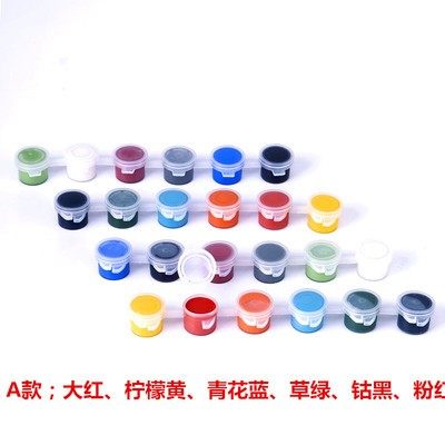 A 6-color bar B 6-color bar Chinese red (100-gram bottle) lemon yellow (100-gram bottle) Sky blue (100-gram bottle) grass green (100-gram bottle) cobalt black (100-gram)