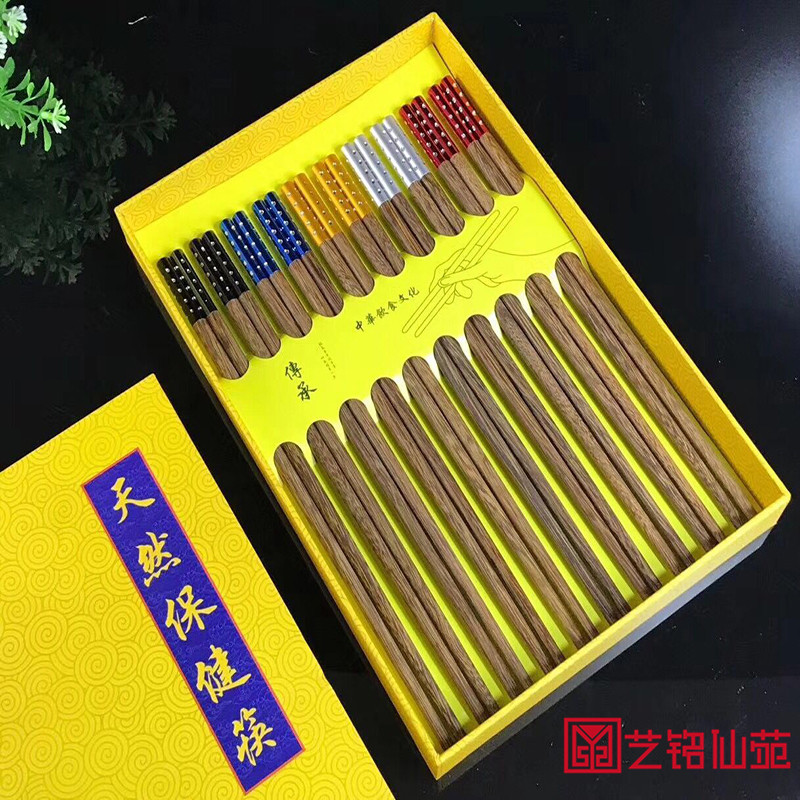 Chicken fin wood five colored drilling chopsticks without rubber-free wood with fine gift box red wood chopsticks new raw material
