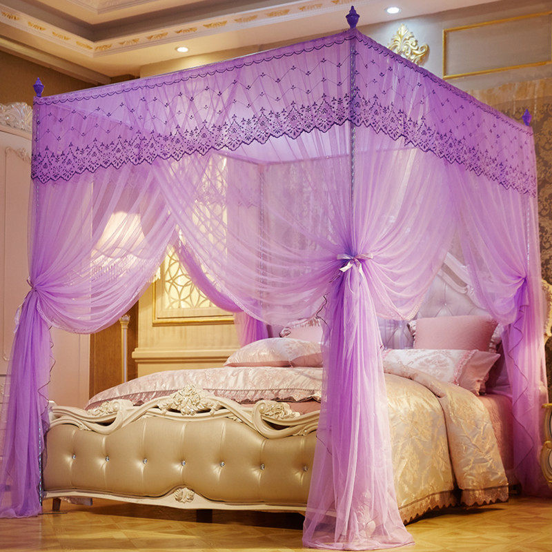 Embroidery encrypted thickened palace mosquito net 1 5 1 8m2 rice bed 2 2 Double domestic stainless steel bracket ground floor