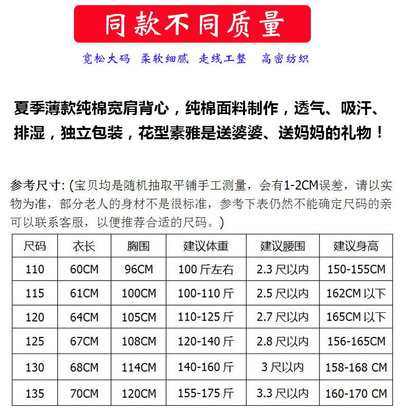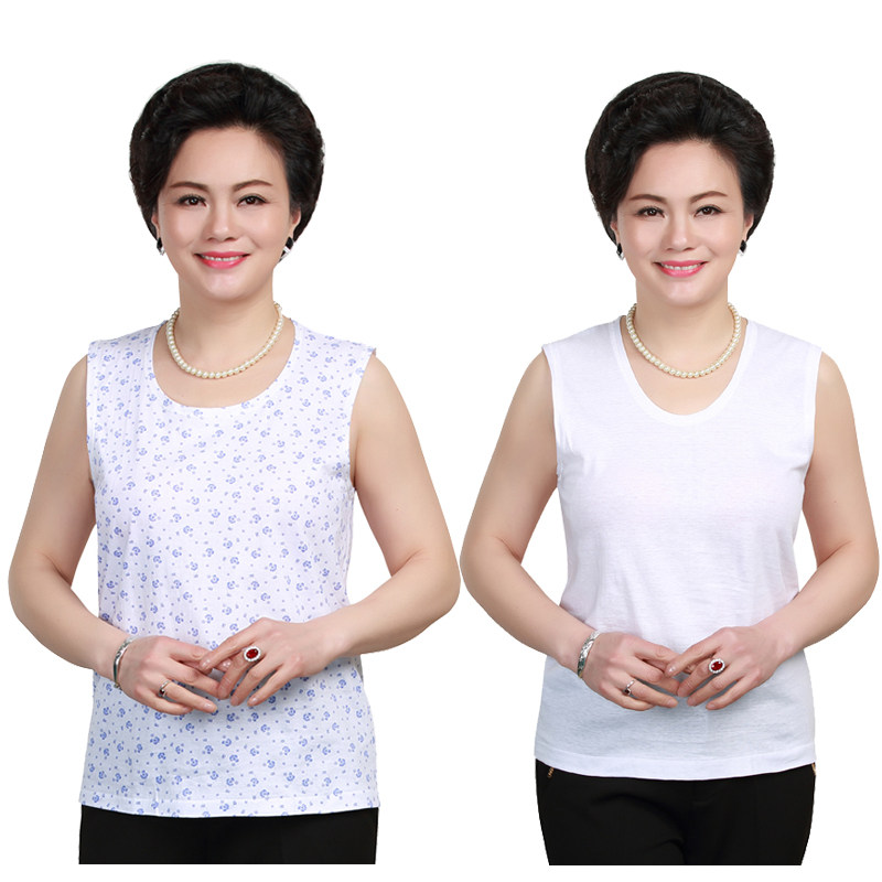 2 pieces of middle-aged and elderly women's pure cotton jersey wide shoulder vest cotton loose mother sleeveless undershirt plus size summer