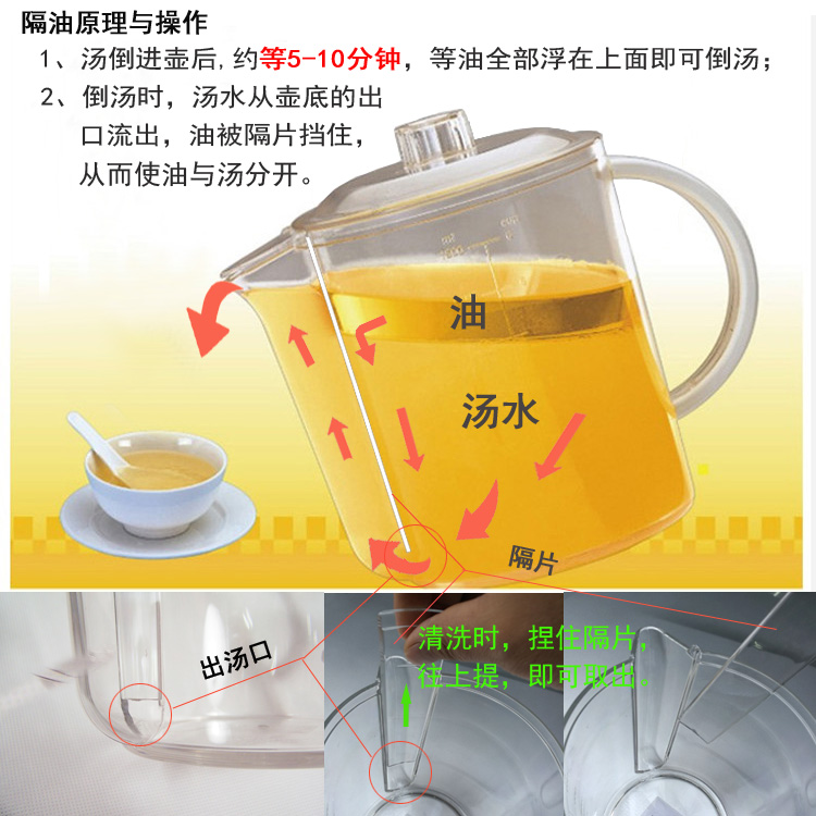 Revitalise Home Grease Oil Soup Separation Pot oil separating oil soup pot Drink to oil filter Slag Kettle Can Microwave Oven