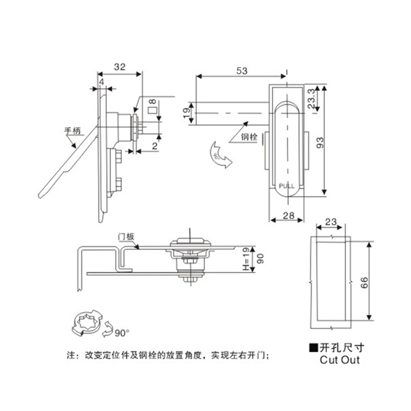 Distribution box door lock flat lock integrated electrical cabinet black electrical cabinet pull handheld lock MS717MS 380