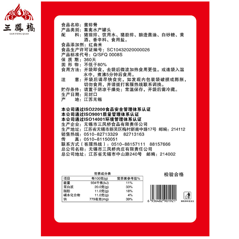 Wuxi specialty Sanfengqiao sauce spare ribs 235g Vacuum bagged New Year food Meat snacks China's time-honored brand