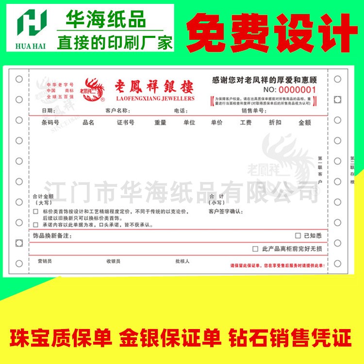 Print Quality Policy After Sales Service Order Applicable to Gold Shop Sales Single Jewelry Order Quality Assurance Slip of Hebei