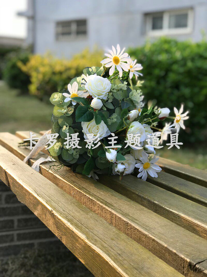 Brigade Filming Mori Series White Roses Holding Flowers Long Pole Small Fresh Out Scene Shooting Props Bridal Wedding Hand Grab Emulation Flowers