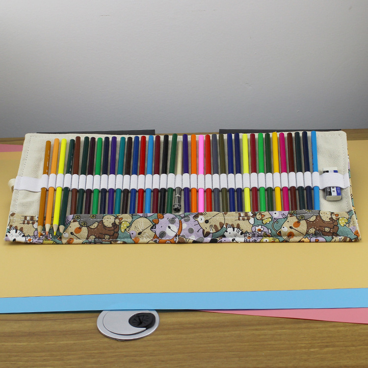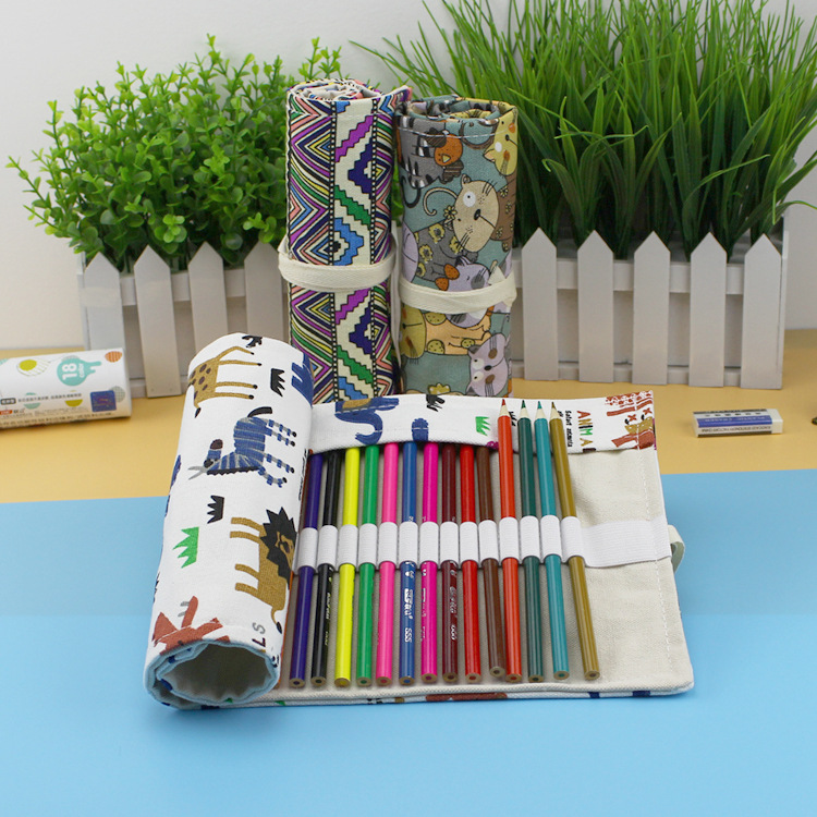 Handmade Canvas Pen Curtain Creative Pattern 36 48 72 Holes Optional Color Pencil Brush Stationery Storage Pencil Bag