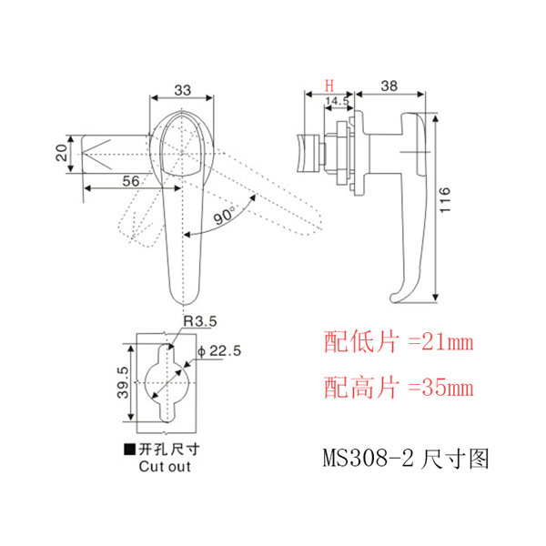 Distribution cabinet door Distribution Case MS308-2MS 308-3 Water - proof Cover Distribution Cabinet Hand Lock Hand Handlock Handlock Distribution Cabinet