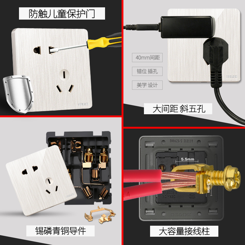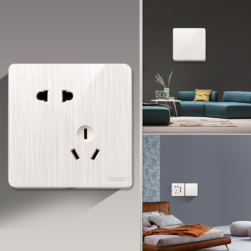 Delixi 86 type dark wire borderless household switch plug brushed white wall 5 holes USB power plug porous panel