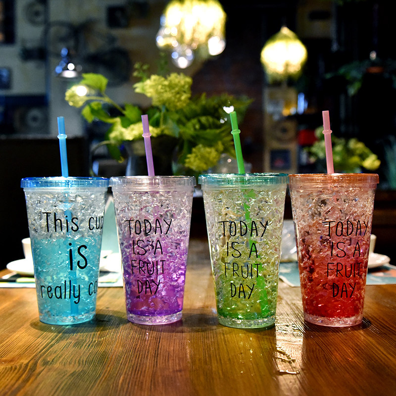 Bei Cheyu summer ice cool Cup Net red ins straw adult water cup female student Korean ice Cup double cup