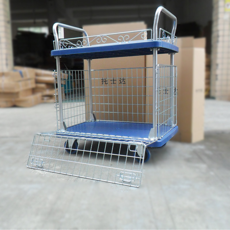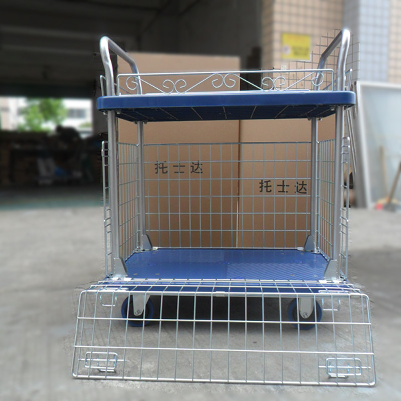 Double decker cage car fence Material caravan trolley Trolley Warehouse Porter Pushwagon Grid Trolley