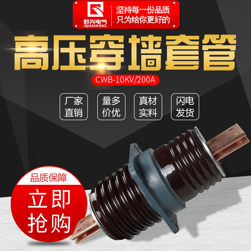 Outdoor high voltage CWB-10KV 2000A-3150A-4000A double copper row ceramic anti-fouling embedded wall bushing