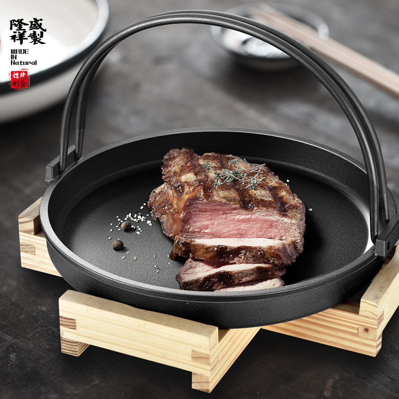 Long Sheng Xiang Cast iron Teppanyaki barbecue pan fried steak Induction cooker baking tray Non-stick pan Hand-held frying pan Commercial household
