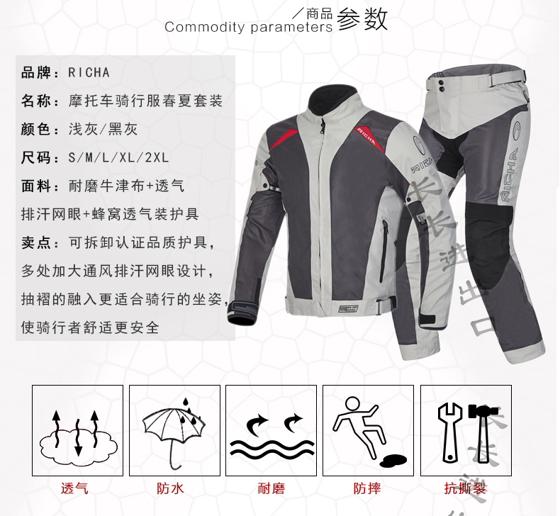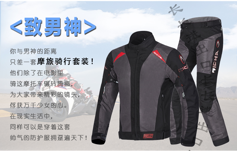 RICHA's new spring and summer mesh motorcycle suit suit motorcycle CE protective gear protective clothing 1801 dark gray