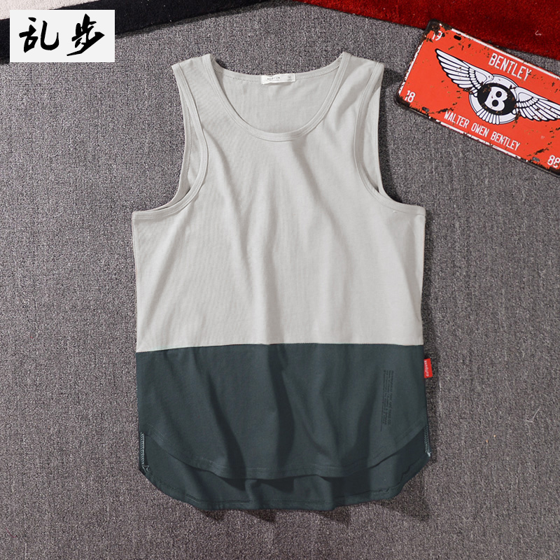 Summer European and American high street loose color vest men's street hip-hop trend brand medium-long sleeveless T-shirt couple undershirt