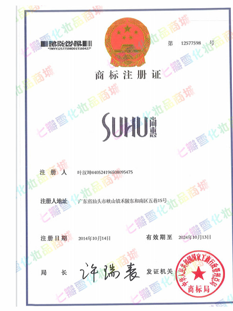 Cosmetics record number Registration certificate number: