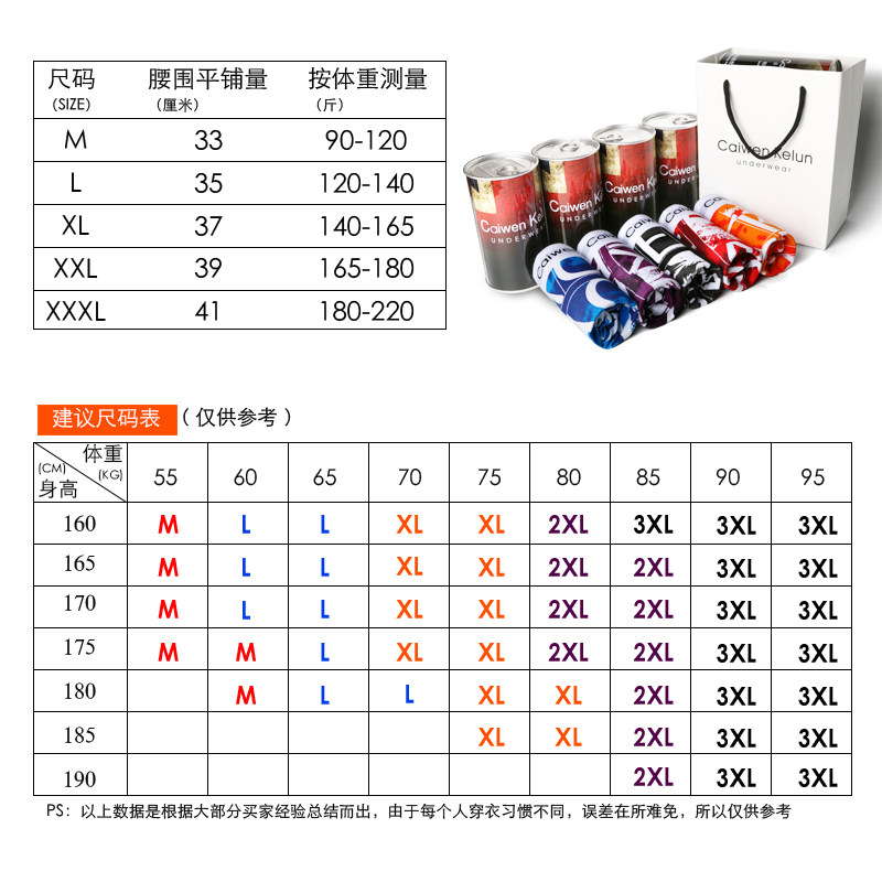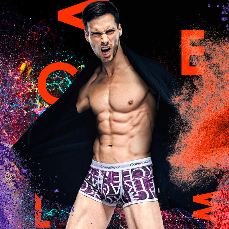 CaiwenKelun4 men's boxer briefs pure cotton personality trend breathable youth boxer briefs head pants