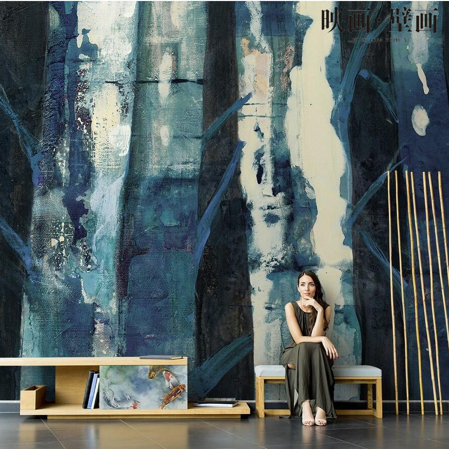 Nordic abstract hand-painted birch forest landscape wallpaper living room TV background wallpaper sofa seamless mural wall covering