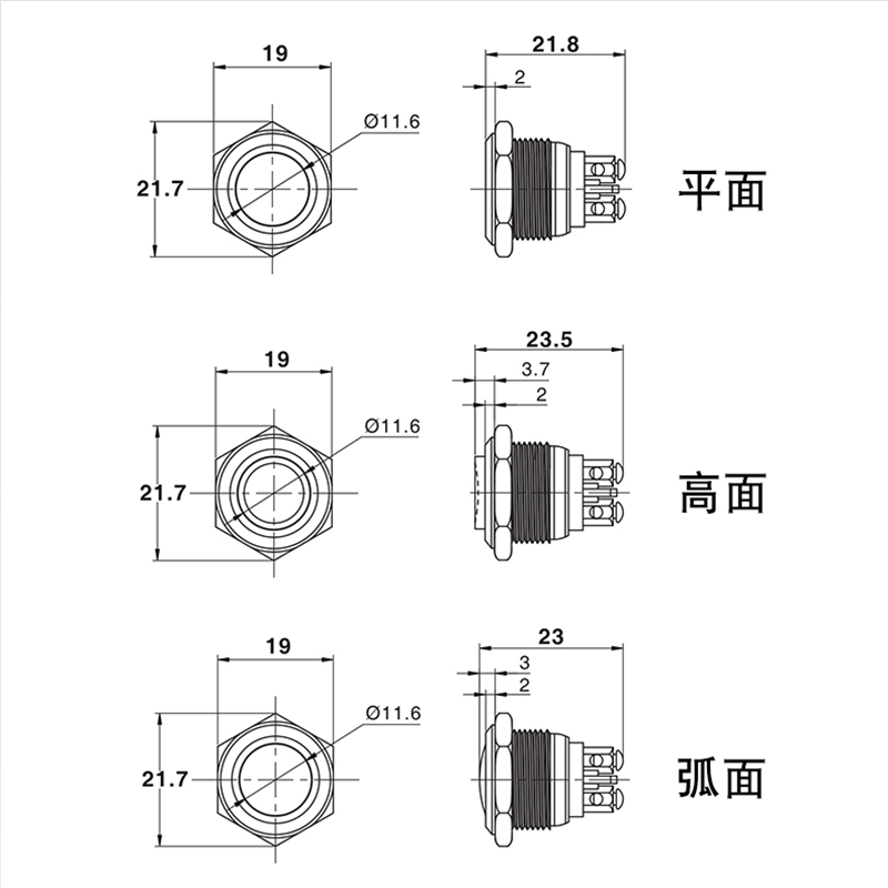 16 19 22mm oxidized metal button color jog reset switch waterproof modification with a normally open screw foot